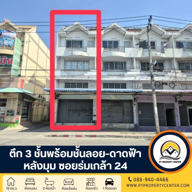 Three-story corner shophouse with mezzanine and rooftop, Soi Rom Klao 24, Keha Rom Klao Road, Bangkok. :ตึกแถว 3 ชั้น ( หลังมุม ) พร้อมชั้นลอย มีดาดฟ้า ซอยร่มเกล้า 24 ถนนเคหะร่มเกล้า กรุงเทพ
