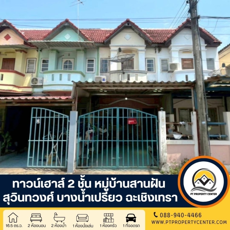 Baan Sanfun Village, Suwinthawong, 2-story townhouses, Bang Nam Priao, Chachoengsao. : หมู่บ้านสานฝัน สุวินทวงศ์ ทาวน์เฮาส์ 2 ชั้น บางน้ำเปรี้ยว ฉะเชิงเทรา