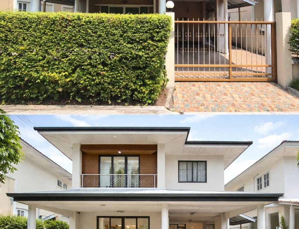• ต่อเติมหลังคาจอดรถหน้าบ้าน พร้อมเทพื้นปูกระเบื้องหน้าบ้าน พร้อมใช้งาน