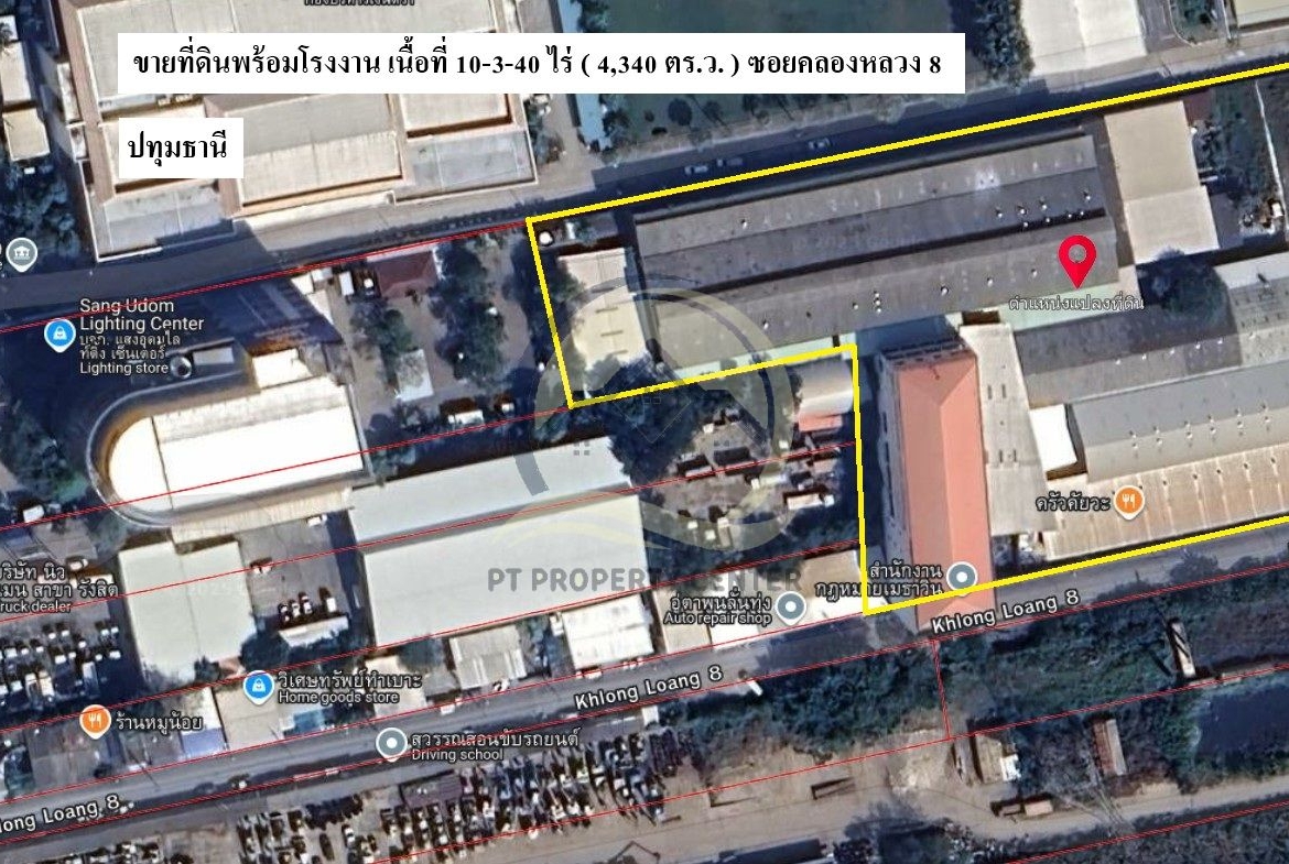 Land for sale with factory, area 10-3-40 rai, Soi Khlong Luang 8, Pathum Thani ที่ดินพร้อมโรงงาน เนื้อที่ 10-3-40 ไร่ (4,340 ตร.ว.) ซอยคลองหลวง 8 ปทุมธานี