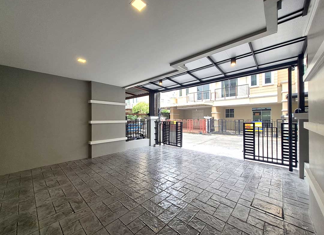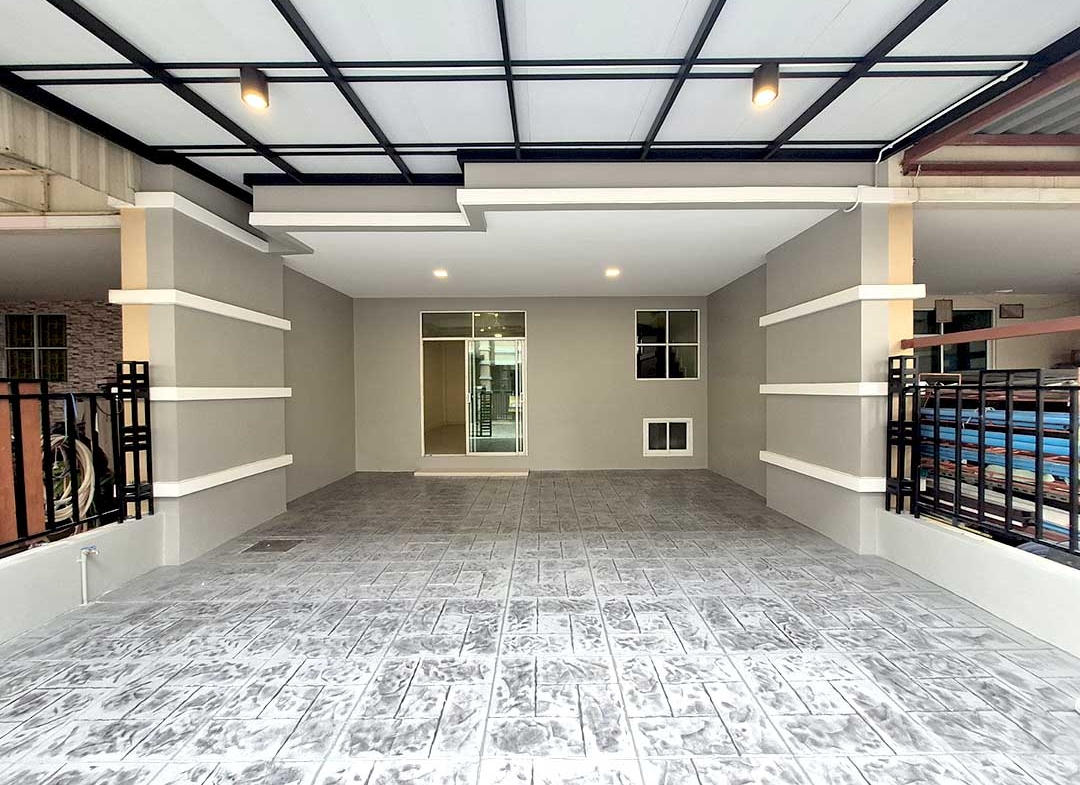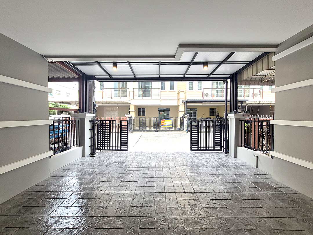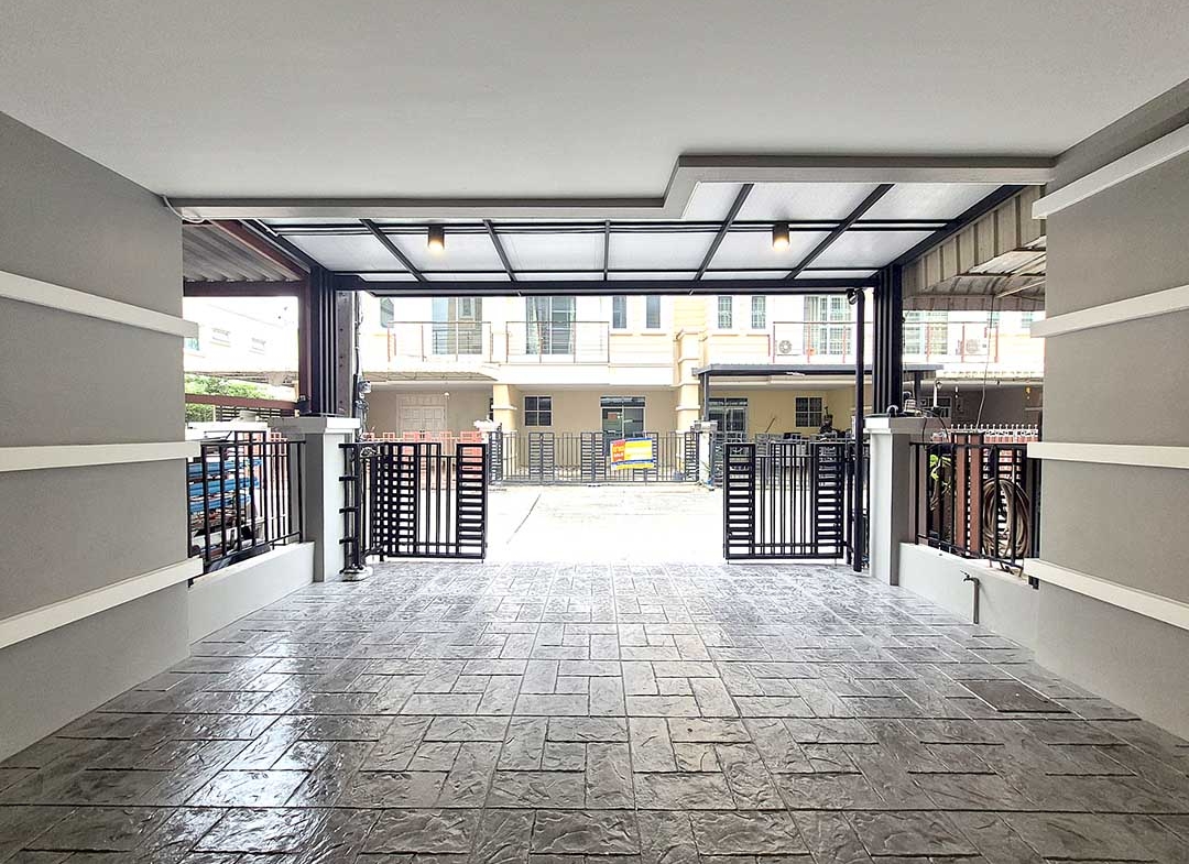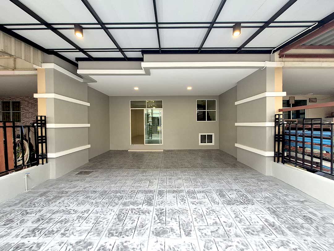 ต่อเติมหลังคาที่จอดรถ หน้าบ้านเรียบร้อย