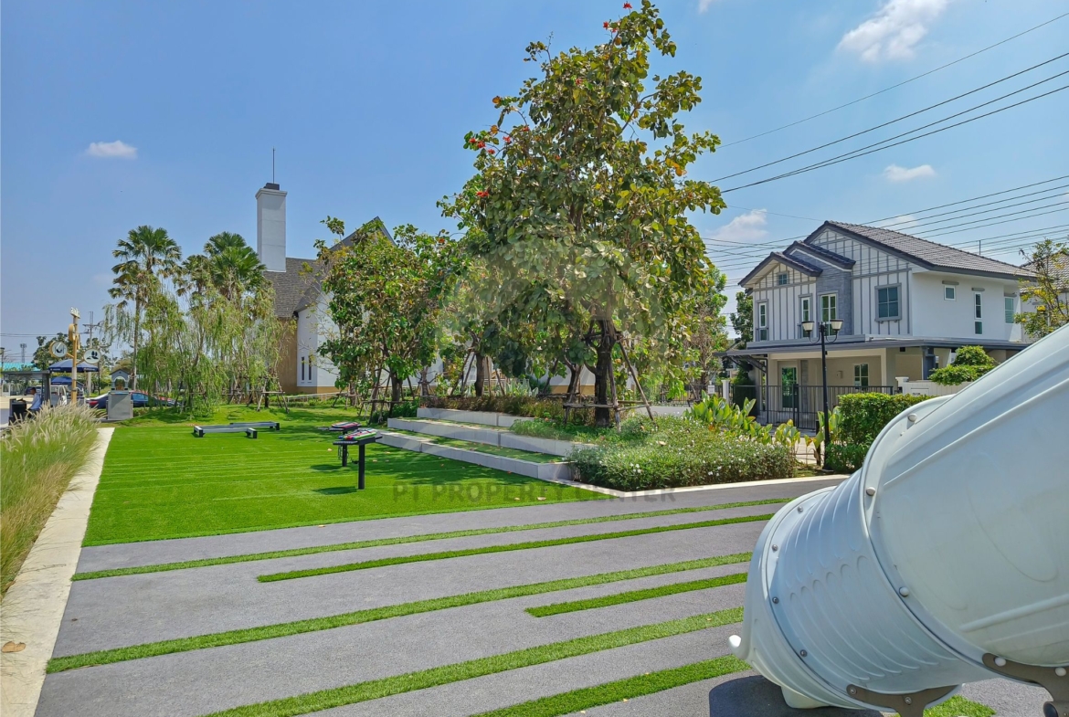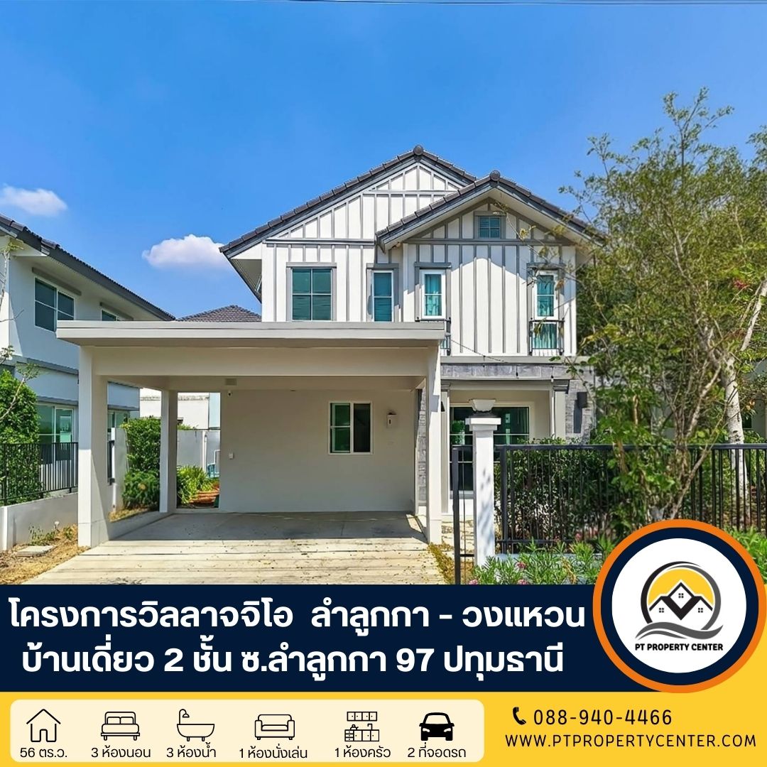 Villaggio Lam Luk Ka – Wongwaen Project, Lam Luk Ka 97, Pathum Thani. : โครงการวิลลาจจิโอ ลำลูกกา – วงแหวน บ้านเดี่ยว 2 ชั้น ซอยลำลูกกา 97 ปทุมธานี ปล่อยเช่าบ้านใหม่ อายุไม่ถึง 1 ปี พร้อมเฟอร์นิเจอร์ครบครัน หิ้วกระเป๋าเข้าอยู่ได้ทันที